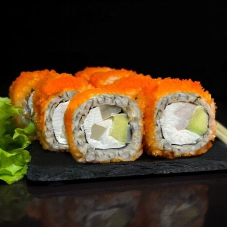 Заказать Рис, нори, сыр творожный, авокадо, кальмар, креветка, икра масаго.