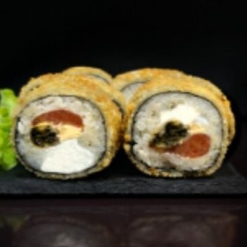Заказать Рис, нори, сыр творожный, лосось терияке, огурец, темпура, соус терияки.