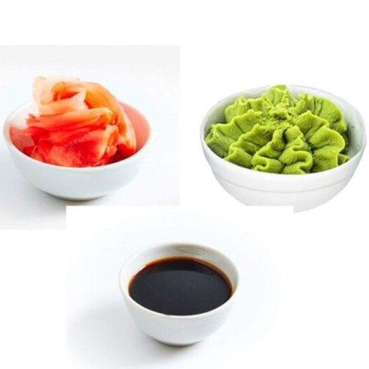 Соевый соус - 40г., васаби - 20 г., имбирь ‑ 20 г.