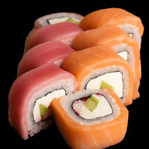 Сыр, краб, авокадо, лосось, тунец, икра масаго.
