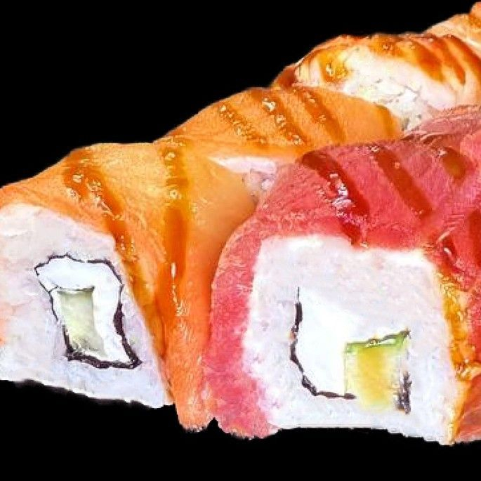 Сыр, угорь, лосось, тунец, огурец, креветка.