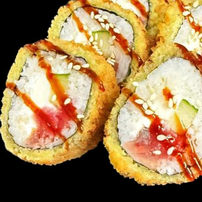 Сыр, унаги соус, огурец, кунжут, тунец темпура.