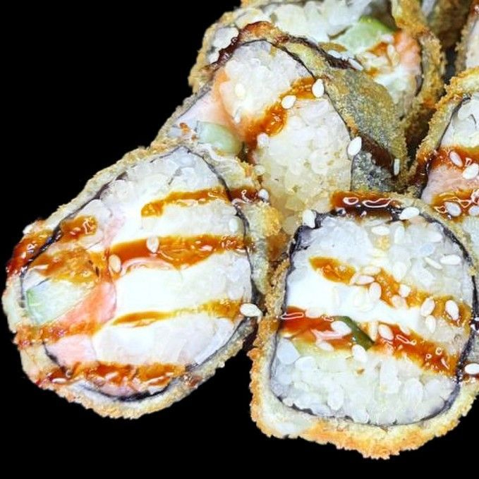 Сыр, унаги соус, огурец, кунжут, лосось темпура.