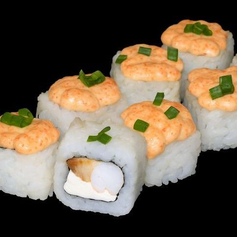 Сыр, угорь, зеленый лук, креветка, спайси соус.