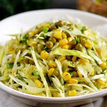 Капуста, кукуруза, горошек, масло подсолнечное.