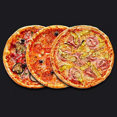 Пицца Пепперони (Сыр, салями пепперони). Пицца Вавилон (Сырная основа, ветчина, грибы, болгарский перец, сыр). Пицца Европейская (Сыр, грибы, охотничьи колбаски, ветчина, маринованный огурчик).