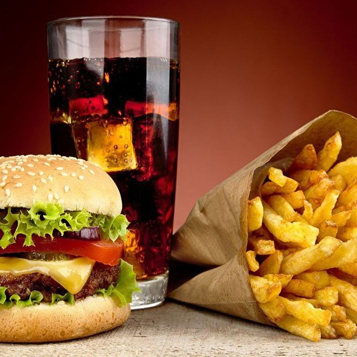 Чикенбургер (ароматная булочка, хрустящие наггетсы, сыр чеддер, листья салата, свежий огурец, бургер соус), картошка фри 150г, Кока-Кола 0.5л.