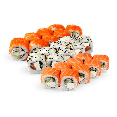 Шеф-карай (лосось, кремчиз, креветка, огурец тобико). Арарэ ролл (кунжут белый , крем-краб, кремчиз, креветка). Филадельфия (рис, нори, лосось, огурец, сыр).