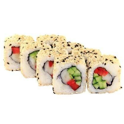 Рис, нори, огурец, перец болгарский, кунжут белый. кремчиз.