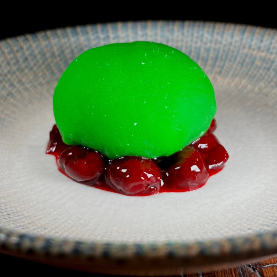 Японский десерт с сыром маскарпоне и соусом манго-каламански.