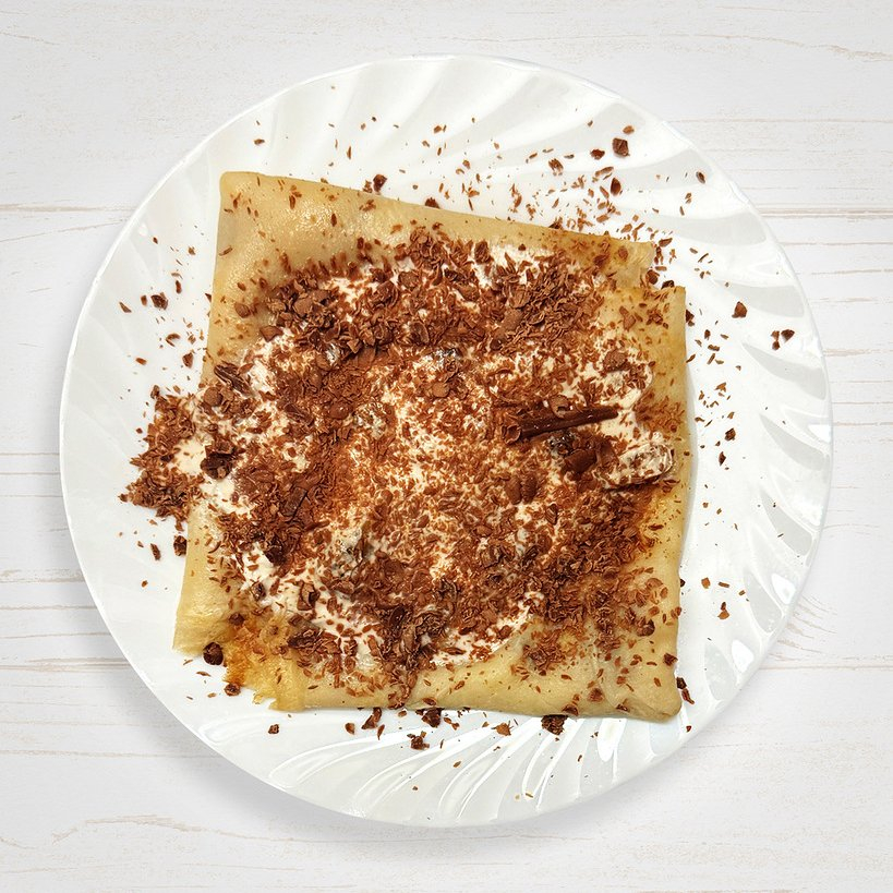 Банан, блинчик, ванилин, сахар, сметана, шоколад для блинов.