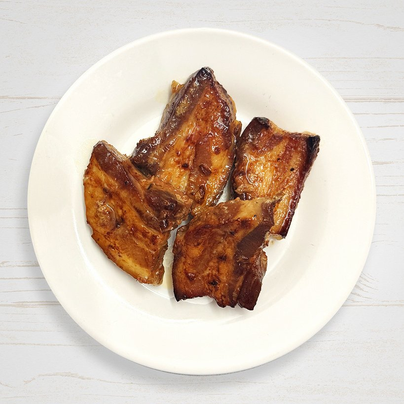 Грудинка свиная, соль, перец, соус маринад для мяса, соевый соус.