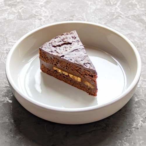 Заказать Постный шоколадный бисквит, крем на основе бананового молока и шоколада, банан.