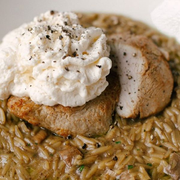 Филе индейки с орзо и белыми грибами