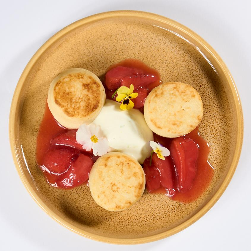 Сырники с лаймовой сметаной и клубничным кули
