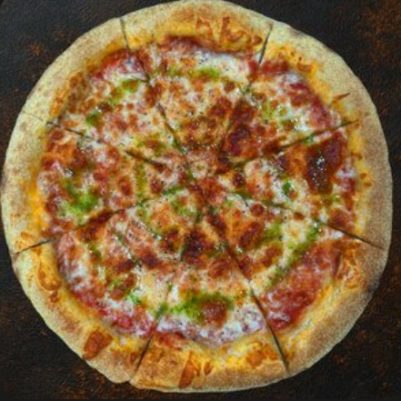 Томатный соус, сыр моцарелла, бекон, красный лук, колбаски охотничьи, соус барбекю, орегано.