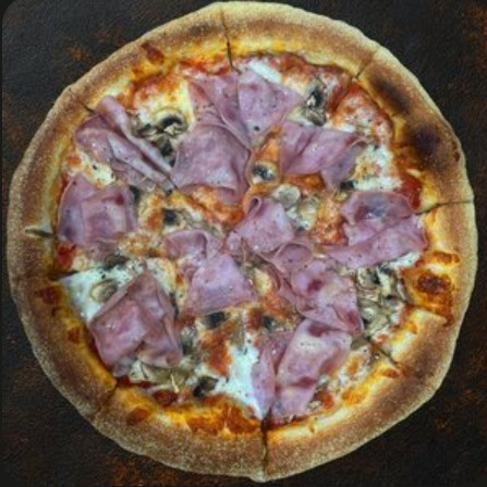 Томатный соус, сыр моцарелла, ветчина, грибы, орегано.