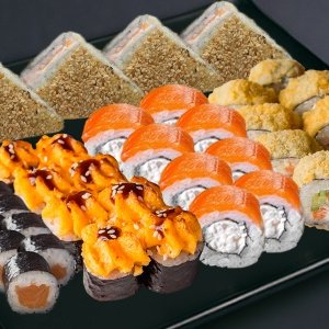 Филадельфия темпура, гриль краб, калифорния в кунжуте запеченная.