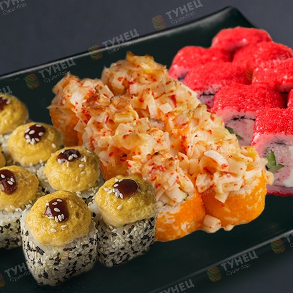 Гриль кальмар, ролл Масакура, ролл Калифорния классика.