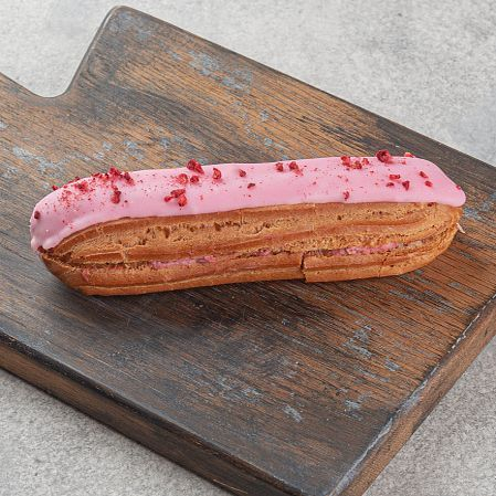 Заварное тесто, малиновый заварной крем, глазурь айсинг сублимированная малина.