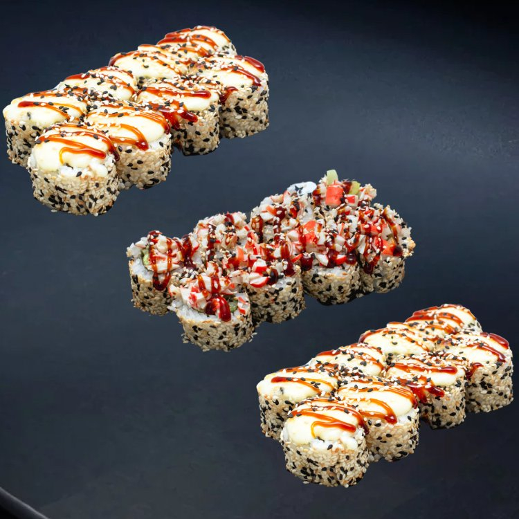 Темпура ролл Самурай, темпура ролл Эби Дракон, острый Сяке Ниндзя.