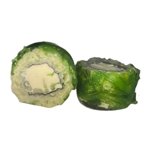 Рис, нори, сыр филадельфия, огурцы, чука, соус кунжутный.