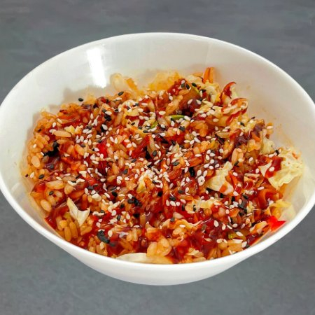 Заказать Рис, морковь, перец болгарский, лук, кабачок, соус унаги, кунжут.