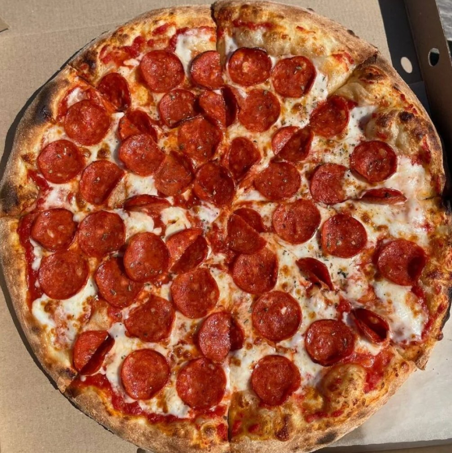 Куриное филе копченое, барбадос, перец сладкий, шампиньоны, моцарелла, томатная основа, маслины.