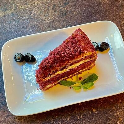Сметанковый крем, бисквитные коржи в сливочной пропитке.