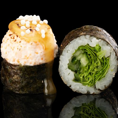 Заказать Креветка, огурец, салат, кисло-сладкий соус, майонез, сыр творожный.