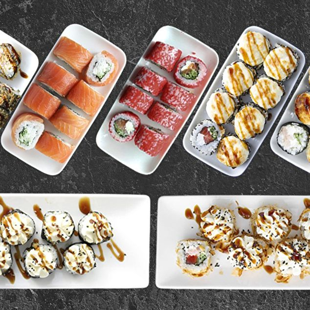 Филадельфия с огурцом, Калифорния с лососем, Темпура с креветками и мидиями, Сливочный бонито, Сливочный Хоккайдо с лососем, Горячий Канада с лососем, Горячий Хоккайдо с креветками.