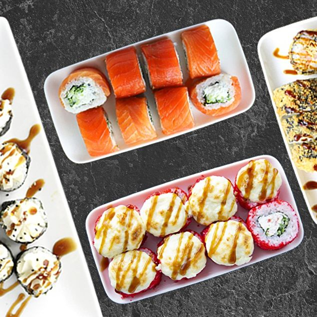 Филадельфия с огурцом, Канада с лососем, Горячий маки ролл с мидиями, Горячий маки ролл с огурцом, Горячий маки ролл с лососем и сыром.