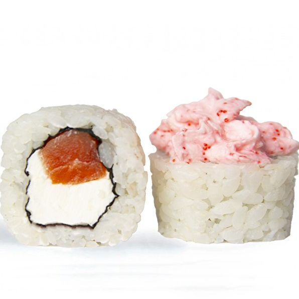 Лосось слабосоленый, Лава крем, крем чиз, рис, нори.