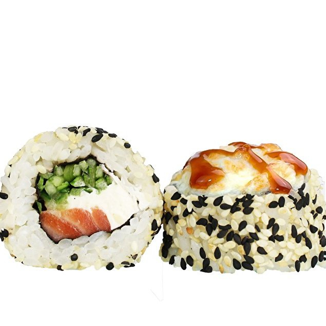 Лосось слабосоленый, крем-чиз, сыр, огурец, нори, кунжут, рис, унаги соус.