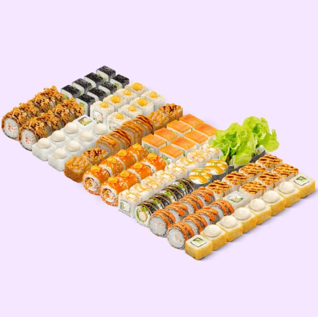 Заказать Запечённая Филадельфия с лососем и крабом, Запечённый с крабом, Цезарь BIG, Спейшл NEW, Чикен темпура, Лава темпура, Запечённый с курицей, Сочный краб терияки, Лава краб, Цезарь, Каппа маки, Калифорния.