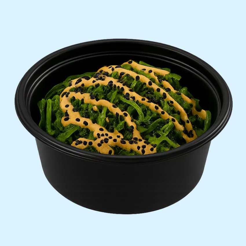 Вакаме, огурец, чука, соус кунжутный, кунжут чёрный.