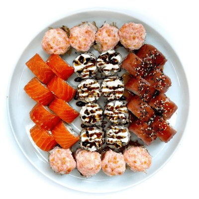 1. Ролл в лососе со сливочным сыром и манго. 2. Ролл в икре масаго с копченной масляной рыбой, томатом и сливочным сыром. 3. В кунжуте ролл с копченной форелью, сливочным сыром, авокадо и омлетом томаго. 4. Ролл с такуаном, сурими, сливочным сыром и кисло сладким чили соусом. 5. Запеченный ролл с лососем и такуаном под острой шапочкой. 6. Запеченный ролл с жаренной курицей, сурими и чесночной шапочкой. + комплект соусов