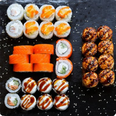 Заказать Запечённый ролл с лососем, запечённый ролл с тунцом, запечённый ролл с креветкой, запечённый ролл с мидиями, запечённый ролл с масляной рыбой, запечённый ролл с курицей.
