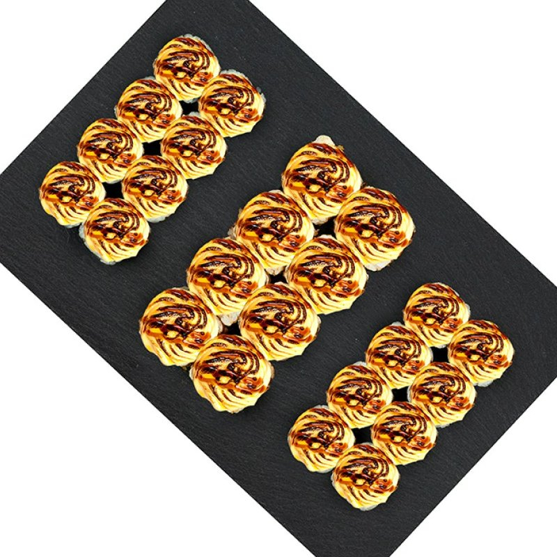 Заказать Запечённый ролл с лососем, запечённый ролл с тунцом, запечённый ролл с креветкой, запечённый ролл с мидиями, запечённый ролл с масляной рыбой, запечённый ролл с курицей.