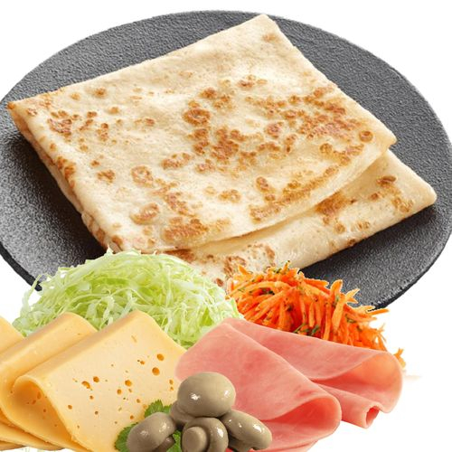 Заказать Блин свежеиспечённый, ветчина, сыр, шампиньоны маринованные, капуста, морковь по-корейски.