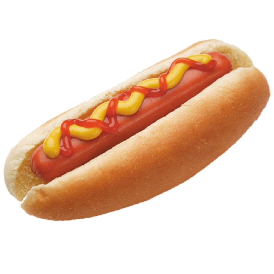 Булочка, сосиска, кетчуп, майонез, горчица.