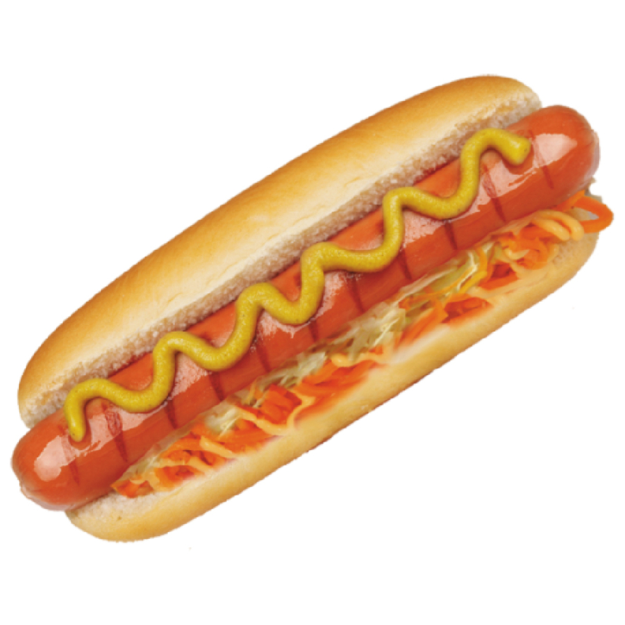 Булочка, колбаска гриль, капуста, морковь пряная, сырный соус.