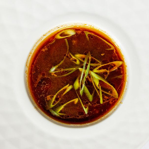 Филе цыпленка, грибы муэр, яичная лапша, корень имбиря, ростки соевых бобов, ростки бамбука, куриный бульон, темный соевый соус, лук порей, кунжутное масло.
